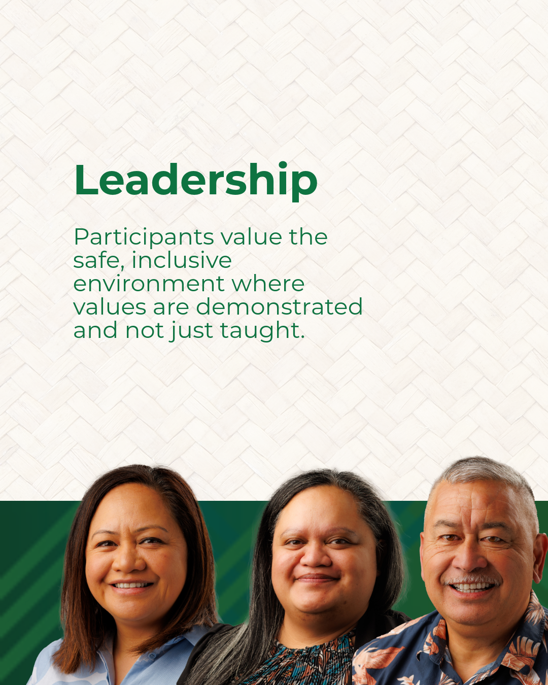 Leadership: Participants value the safe, inclusive environment where values are demonstrated and not just taught.